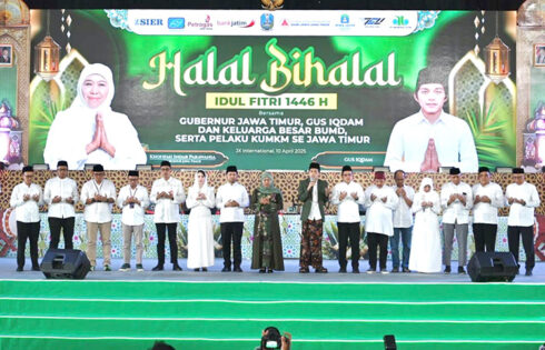Gubernur Jawa Timur Khofifah Indar Parawansa Halal Bihalal bersama jajaran Komisaris, Direksi dan pegawai Badan Usaha Milik Daerah (BUMD), Anak Perusahaan BUMD, dan pelaku Koperasi hingga UMKM Jawa Timur di Jatim International Expo (JIE) Convention Exhibition, Jl. Ahmad Yani Surabaya, Kamis (10/04).