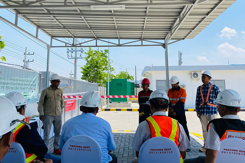 Percobaan pengaliran gas dihadiri Kadiv Teknik & Komersial PT PJU Bp Budiyanto, perwakilan PT Petrogas Wira Jatim (PWJ) sebagai kontrator pipa gas, Bp Bagus wakil PT Maspion Industrial Estate sebagai pemilik Kawasan, serta Bp Isa Safardi mewakili PT Citra Nusantara Energi selaku buyer. Turut hadir menyaksikan Bp Deviq Afrizon perwakilan dari Ditjen Migas Kementerian ESDM dan Bp Deco Agustavio dari perusahaan inspeksi PT Marka Inspekstindo Technical (Marindotech).